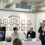 トークショー背後の壁面は、2024年に京都で公開した和菓子選12選の原画。これも大頭眞一先生の雑誌連載の挿絵でした。